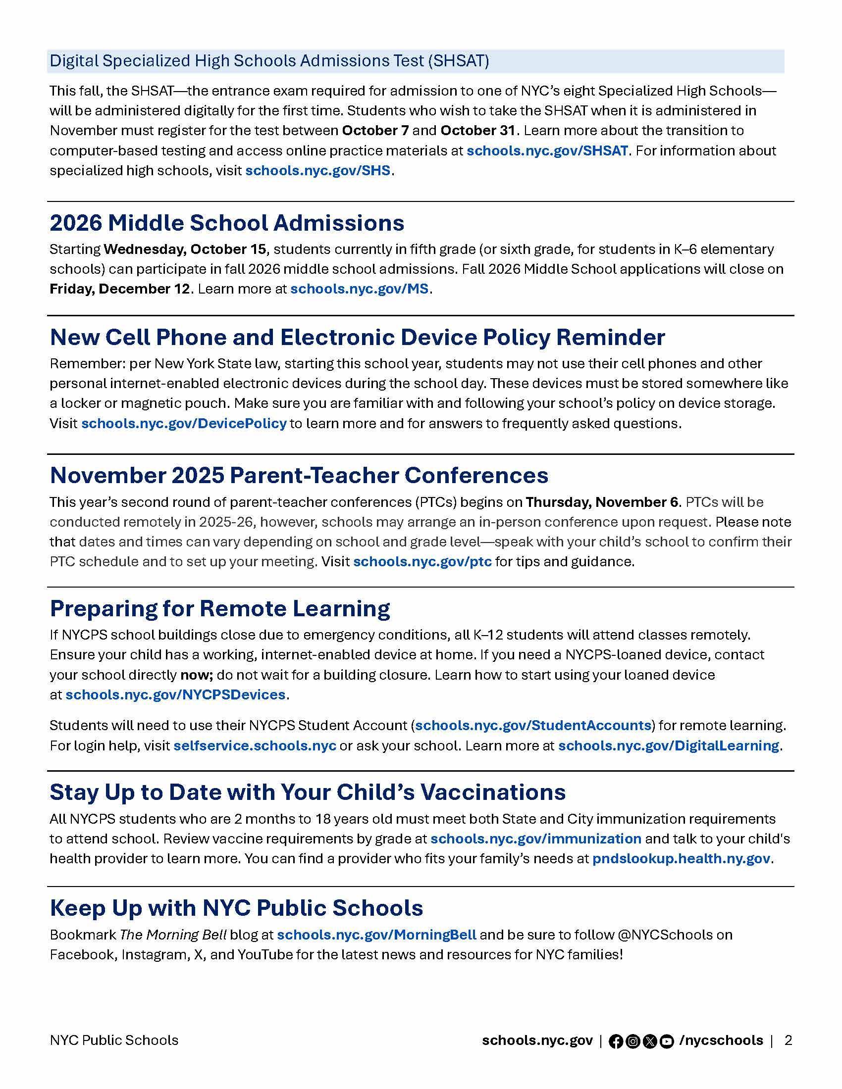 Bookmark The Morning Bell blog and be sure to follow @NYCSchools on Facebook, Instagram, X, and YouTube for the latest news and resources for NYC families!