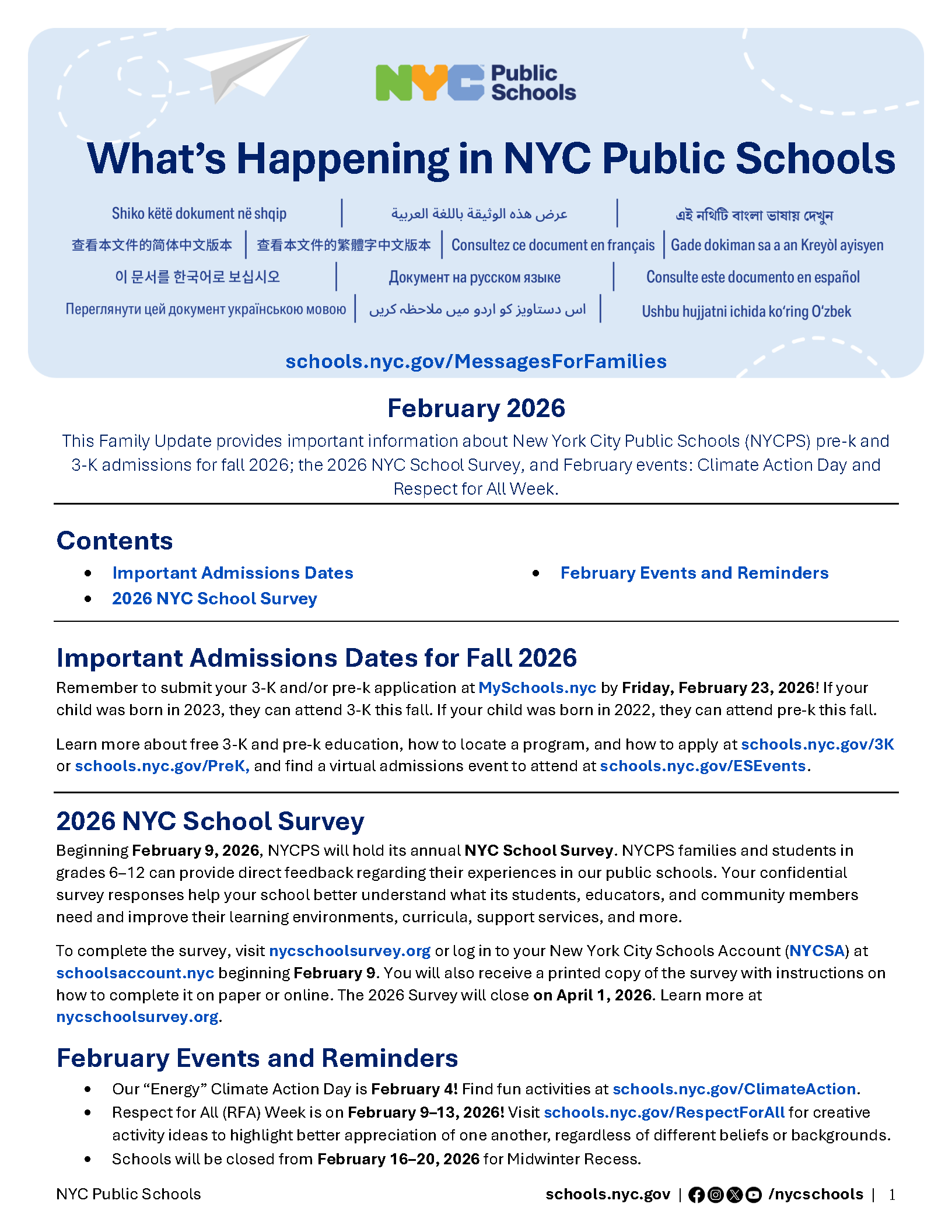 - February 2, 2026 NYCPS Family Update available in: